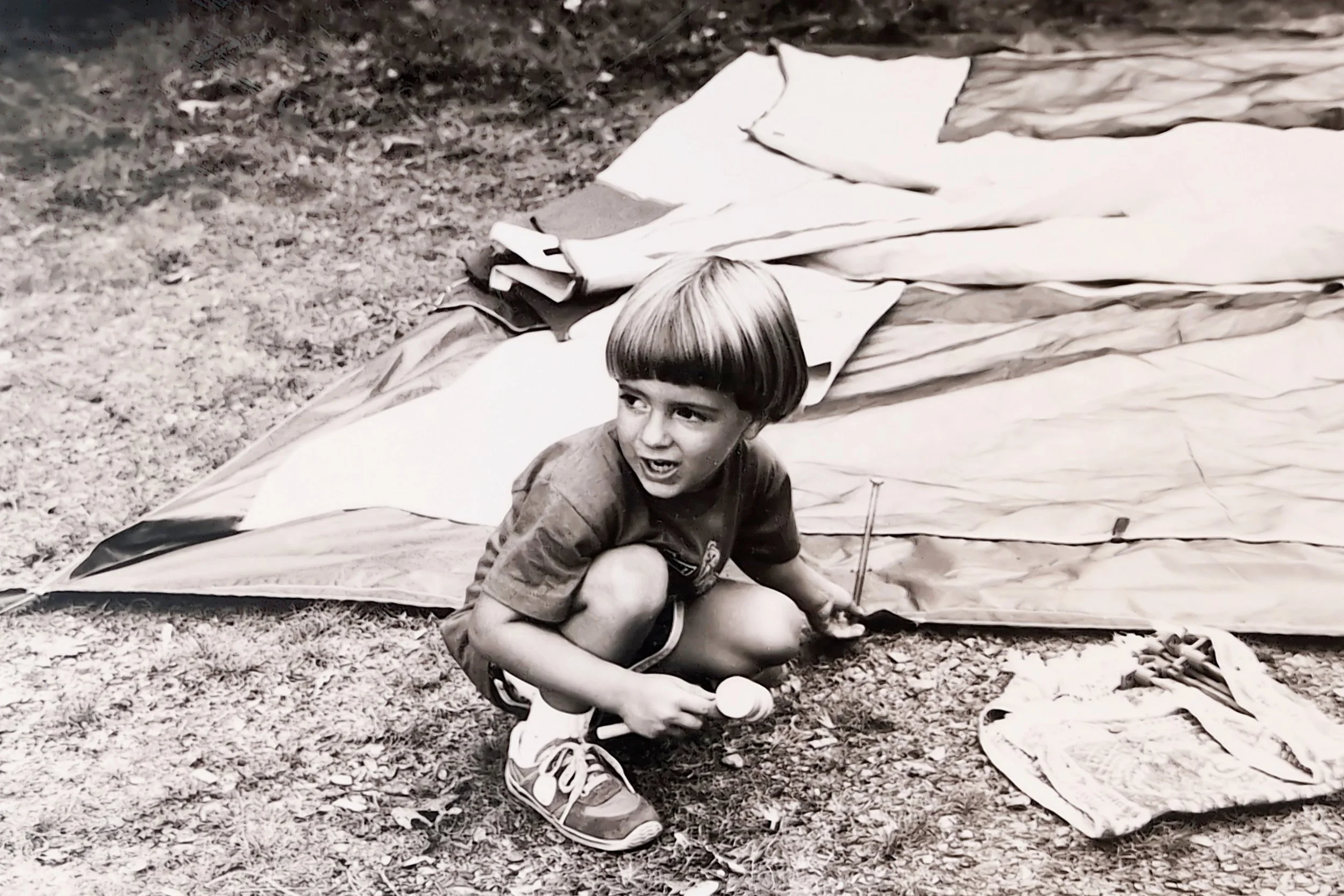Here’s me as a kid, setting up our family’s tent on a camping trip. Image copyright, Amy Rapoport.